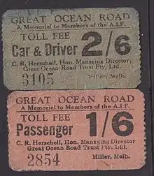 Le , la section de la partie est à Lorne est ouverte officiellement par des célébrations. Cependant, le , elle est refermée pour des travaux supplémentaires, rouvrant le avec des péages pour recouvrir les coûts de construction. Payable à l'entrée est de la route, le tarif est de deux shillings pour les voitures et de dix shillings pour les chariots de plus de deux chevaux.