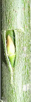 - au début du printemps, on dit alors que c'est une greffe « à œil poussant » car le rameau se développera immédiatement.