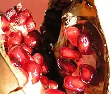 - Les arilles de grenades contiennent des flavanols (ou catéchines) comme les cerises ou les prunes mais en moins grande quantité[9]. Sont aussi présents les dimères de flavanols (des procyanidols) en petites quantités.