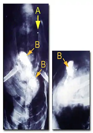 Localement cette pollution s'ajoute à celle des séquelles de guerre, notamment en Europe dans l'ancienne zone rouge de la Première Guerre mondiale. - L’ingestion de grenaille de plomb par les oiseaux d’eau et les rapaces est connue depuis un siècle au moins, mais elle pourrait avoir été quantitativement très sous-estimée car les oiseaux se cachent pour mourir, et assez bien pour qu’on ait peu de chances de les trouver[3],[4]. Ils échappent donc à l'observation et aux statistiques. Autour de la Méditerranée, ce sont 25 à 45 % des sujets qui sont porteurs de billes de plomb dans les deltas méditerranéens[5].