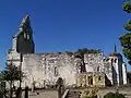 - église Saint-Jean-Baptiste-d'Auzac, en direction du nord-est depuis le bourg, en ruines et dont trois chapiteaux datant du XIIe siècle ont été sauvegardés au Musée d'Aquitaine à Bordeaux.