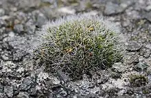 - Coussinet compact, presque hémisphérique. On peut observer les poils hyalins qui prolongent les « feuilles ».