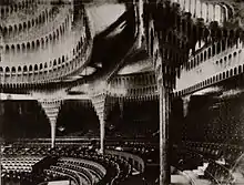 Le théâtre était peint en rouge. Son espace intérieur pouvant accueillir 3 500 spectateurs, il était conçu à la manière d'une caverne sous un dôme et n'avait pas de balcon, ce qui contribuait à sa spaciosité. Le dôme et les piliers étaient décorés par des pendentifs ornementaux alvéolés qui ressemblaient à des stalactites. Quand il était illuminé, les ampoules du plafond formaient un motif de constellation céleste, et le plafond voûté était consacré à une autre idée, le ciel étoilé. Dans le hall d'entrée mais aussi en d'autres endroits, Poelzig plaça des ampoules colorées pour créer une toile de fond visuellement étonnante. Des entrées séparées étaient prévues pour les places chères et les places bon marché. Le théâtre comprenait aussi un restaurant pour les clients les plus aisés, ainsi qu'une cafétéria pour les spectateurs plus modestes et un bar. Les acteurs et les machinistes avaient leur propre bar, leur barbier, une salle de dressing très ample et des équipements modernes pour la scène.