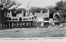 Après un incendie en 1896, il ne reste presque rien de la demeure originelle. Les toits traditionnels en chaume sont remplacés par des couvertures en ardoises galloises, plus solides. Rhodes, détestant les fabrications industrielles, telles les charnières de fenêtres, les fait remplacer par des pièces en bronze ou laiton coulé. Quoique sans instructions précises, Baker remplace la façade de la maison, ajoute une longue galerie à l'arrière et construit une nouvelle aile, qui comporte une salle de billard et une chambre de maître au second étage, dotée d'une grande baie vitrée donnant sur Devil's Peak. Il ajoute aussi un grand hall avec une cheminée monumentale[2].