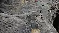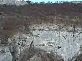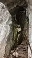 L'accès à la grotte se fait par un escalier taillé à même la roche.