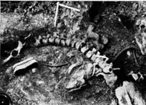 La même couche 3 S a aussi livré un squelette d'Ursus spelaeus en connexion anatomique, avec son crâne en place et ses os iliaques, mais auquel il manque les quatre pattes, les omoplates et toutes les vertèbres cervicales. Il se trouve au muséum de Toulouse. Louis Méroc y trouve aussi un autre crâne d'ours des cavernes encadré de ses deux mandibules et accompagné de quelques vertèbres, ceci trouvé dans « une sorte de berceau formé de petites dalles et plaquettes calcaires imbriquées » qui l'amène à penser à un dépôt intentionnel[29].