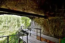 À l'origine, l'entrée elliptique était de 7 x 1,7 m, mais à la suite des travaux d'excavation et après avoir enlevé les dépôts meubles, la hauteur est passée à 6 mètres. L'entrée mène à la galerie principale, large d'environ 7 mètres, longue de 10 mètres et orientée au nord-ouest. Elle s'ouvre sur la chambre centrale (9 x 11 m), qui possède plafond en forme d'arc d'environ 10 mètres de haut[3]. Trois autres galeries partent de la chambre centrale, avec une menant à la Terrace zone, de 9 x 4,5 m. Les deux autres galeries, vers l'est et le sud, sont étroites, sombres et remplies de roches karstiques et de sédiments[3].