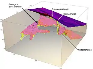 Le site comprend trois ensembles de cavités, avec la grotte supérieure contenant les dépôts internes de Gladysvale et un dépôt externe (voir schéma ci-contre). Gladysvale a été l'un des premiers sites en Afrique à être cartographié en 3D, par Peter Schmid et des chercheurs de l'université de Zurich[2].