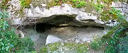 Dans la couche inférieure des os de faune paléolithique archaïque et des outils grossiers marquent une occupation du Moustérien ou de l'Aurignacien[1].