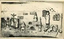 On pense que ces sculptures étaient colorées à l'origine, car de petites traces de peinture subsistent. Pour une grande partie, elles représentent des scènes religieuses. Parmi elles, on peut trouver la Crucifixion, ainsi que diverses représentations de Saints.