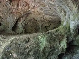 Le fond de cette grotte, qui sert de sanctuaire pour quelque 300 chauves-souris de 11 races différentes, a été fermé par une lourde grille pour préserver l'habitat de ces animaux[26].