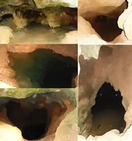 Située près du rivage de l'étang de Leucate, elle présente plusieurs orifices d'entrée qui conduisent à des boyaux noyés (120 mètres de long, 34 mètres de profondeur d'eau)[2].