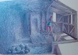 - Cette pièce, pour des raisons d’hygiène, est isolée du reste du village. Les murs sont blancs, car recouverts de chaux (matière) pour sa propriété antiseptique, déjà connue au Moyen Âge. Ce n’était pas un hôpital car à cette époque on ne savait pas encore soigner les malades.