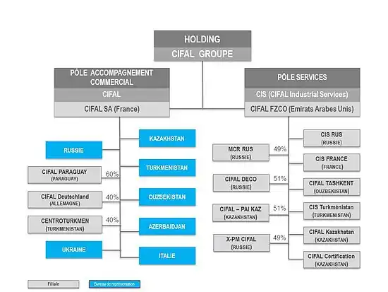 Dans le cadre de la restructuration du groupe à la suite de la crise sanitaire et du conflit Russie-Ukraine, la continuité des activités de la société SA CIFAL Groupe est assurée par la société CIFAL International Services [8] qui a transféré la filiale russe à un management local.