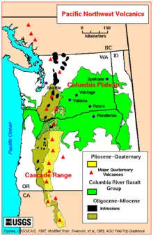 Au cours de la fin du Miocène et au début du Pliocène, l'une des inondations de basaltes des plus importantes jamais connue engloutit environ 163 700 km2 de la région Nord-Ouest Pacifique, formant une grande province ignée. Les éruptions ont été les plus notables il y a entre 17 et 14 millions d'années.