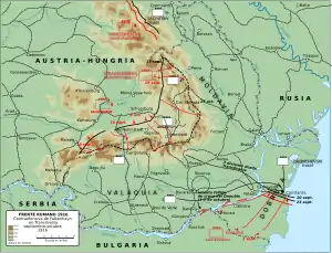 Pendant l'été 1916, les empires centraux se préparent à une éventuelle entrée de la Roumanie dans la Première Guerre mondiale du côté de l'Entente. Le , les états-majors allemand, austro-hongrois et bulgare concluent un accord, auquel se joindra un peu plus tard l'Empire ottoman, qui prévoit qu'en cas d'invasion de la Transylvanie austro-hongroise par l'armée roumaine, les Bulgares répliqueront par une invasion de la Dobroudja roumaine.
