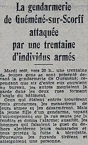 - « Guémené-sur-Scorf. Les travaux d'adduction d'eau potable et de construction d'égoûts », Journal La Dépêche de Brest et de l'Ouest, , page 4 (lire en ligne, consulté le ).