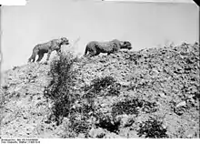 Le guépard sud-africain était l'un des animaux les plus répandus. Ces deux guépards ont été photographiés au sud-ouest de l'Afrique du Sud entre 1906 et 1918.