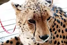 Deux guépards en captivité dans le parc zoologique de Nehru, en Inde. Le guépard asiatique, qui habitait autrefois l'Inde, y est éteint[62].