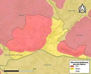 Le retrait-gonflement des sols argileux est susceptible d'engendrer des dommages importants aux bâtiments en cas d’alternance de périodes de sécheresse et de pluie. La totalité de la commune est en aléa moyen ou fort (67,4 % au niveau départemental et 48,5 % au niveau national). Sur les 718 bâtiments dénombrés sur la commune en 2019, 718 sont en aléa moyen ou fort, soit 100 %, à comparer aux 84 % au niveau départemental et 54 % au niveau national. Une cartographie de l'exposition du territoire national au retrait gonflement des sols argileux est disponible sur le site du BRGM[18],[Carte 2].