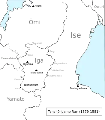 - (en) Cet article est partiellement ou en totalité issu de l’article de Wikipédia en anglais intitulé « Tenshō Iga War » (voir la liste des auteurs).