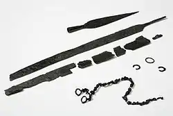 Durant l'Antiquité, chez les peuples celtiques comme chez les autres peuples européens, l'arme offensive principale est la lance. Celle-ci diffère peu chez les Celtes, du modèle utilisée par les autres peuples. Il s'agit d'une arme d'hast doté d'une hampe en bois et d'un fer pourvu de deux tranchants. Ces derniers sont parfois ondulés ou flammés[5]. Le talon de la lance peut, lui aussi, être pourvu d'une pointe. Au cours du combat, la lance est utilisée conjointement avec différents types de javelot et d'armes de jet. L'épée, bien qu'étant une arme prestigieuse, est davantage une arme d'appoint, utilisée après que la lance ait été rendue inutilisable.