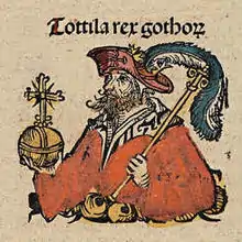 Du côté des Ostrogoths, le départ de Bélisaire favorise leurs initiatives. Totila continue de renforcer son emprise sur l'Italie et parvient même à envoyer une flotte ravager la Dalmatie et vaincre le gouverneur de Salone, sur le territoire même de l'empire d'Orient. En outre, il est en mesure de se faire ouvrir les portes de Rome en par des Isauriens après que la garnison de 3 000 hommes a offert une âpre résistance. Totila se met immédiatement à repeupler la ville et à lui redonner une partie de son faste d'antan. De nouveau, il tente d'obtenir la paix en offrant de renoncer à la Sicile et à la Dalmatie, de payer un tribut annuel et d'envoyer des troupes à l'empire d'Orient à chaque demande. Là encore, Justinien refuse et persiste à vouloir conquérir l'Italie[50]. Totila réagit en lançant un raid d'importance sur la Sicile, seule région de l'Italie byzantine épargnée par le retour en force des Ostrogoths. La force ostrogothe met à sac l'île qui pourvoit grandement aux besoins alimentaires de l'Empire. Néanmoins, elle ne peut s'emparer des principales cités insulaires, dont Messine et Syracuse. Justinien envoie le patrice Libérius à Syracuse pour en briser le siège. Il rejoint ensuite Palerme mais, trop âgé, il est remplacé par Artabasde qui chasse les soldats goths à la fin de l'année 550. Si la Sicile n'est pas tombée aux mains de Totila, elle a grandement souffert et cet événement démontre la capacité d'action grandissante des Ostrogoths.