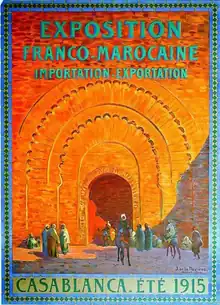 Les forces de renseignement françaises travaillent dur pour combattre les puissances centrales et gagner le soutien du peuple marocain. Une série d'expositions commerciales, comme la Foire de Casablanca de 1915, sont organisées pour démontrer la richesse de la France et les bienfaits de la coopération. En plus d'intensifier leur campagne de propagande et d'augmenter l'utilisation de pots-de-vin pour convaincre les tribus de se soumettre, les Français établissent des marchés dans leurs avant-postes militaires et paient des Marocains pour entreprendre des travaux publics[74]. Les érudits islamiques sont encouragés à émettre des fatwās soutenant la déclaration d'indépendance du sultan marocain vis-à-vis de l'Empire ottoman[75].