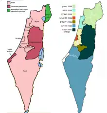 Dans le même contexte, on fait référence à certaines villes suivant leur nom arabe ou hébreu ou suivant le nom d'usage du temps de la Palestine mandataire, comme Jaffa, ville arabe fusionnée à Tel-Aviv et Lydda renommée Lod après leur dépeuplement en 1948 ou encore Naplouse à laquelle les Israéliens font référence en tant que Sichem.