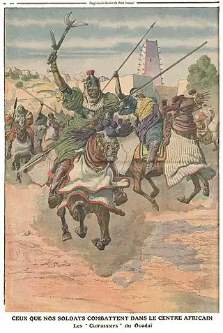 Fondée par le peuple Toundjour au XVIe siècle et située dans l'est du bassin du Tchad, l'économie du Ouaddaï reposait sur l'élevage du bétail et le commerce des esclaves(un peu comme le reste du Soudan). En conséquence, le Ouaddaï disposait d'une armée compétente, à base de cavalerie dont le but principal était de piller d'autres territoires à la recherche d'esclaves[1]. Même si l'Islam était la religion d'État, les pratiques religieuses traditionnelles restaient courantes au sein de la population Ouaddaïses[2],[3].Quoi qu’il en soit, la religion a été utilisée pour justifier les raids d’esclaves contre les peuples non musulmans du sud (actuel sud du Tchad, République centrafricaine et Soudan du Sud). Au XIXe siècle, le royaume grandit en puissance grâce à une succession de rois capables (kolak), malgré des guerres civiles occasionnelles. L’État a finalement forgé une alliance avec l’influent ordre Senussi, basé dans le désert au nord(Libye) et contrôlant d’importantes routes commerciales transsahariennes, devenant ainsi la puissance dominante dans le bassin centre-est du Tchad[1]. Le royaume a prospéré sous les règnes stables d'Ali ibn Muhammad Sharif (r. 1858-1874) et de Yusuf ibn Muhammad Sharif (r. 1874-1898)[4]. Les caravanes choisissaient de plus en plus de traverser le territoire, le jugeant plus sûr, et apportaient beaucoup de richesse à la région. S'appuyant sur son économie prospère et ses armes à feu importées des Senussi, le royaume a étendu et soumis plusieurs autres royaumes et sultanats tels que Bornu[2] et le sultanat de Bagirmi, les forçant à payer un tribut et enlevant des artisans qualifiés pour enrichir l'empire. Dans le même temps, la ruée vers l’Afrique a entraîné une colonisation rapide du Sahel par la France. À l'est, les Britanniques ont vaincu le Soudan mahdiste et rétabli le sultanat du Darfour comme État tampon, la France avec l'expédition Marchand est déjà passé dans la région. Le dirigeant du Darfour, Ali Dinar, s'est révélé être un monarque relativement efficace et indépendant[5]. À l'ouest, les armées coloniales françaises avaient commencé à s'étendre dans le bassin du Tchad, où elles sont entrées en conflit avec divers États, tribus et mouvements locaux, dont l'ordre Senussi[6]. À la suite des négociations de 1898-1899, les gouvernements britannique et français ont convenu de se partager le bassin du Tchad. Ils décidèrent de confier le Ouadaï à la France, alors que le Darfour était formellement inclus dans la sphère d'influence britannique. L'incertitude demeure cependant, car les frontières entre les deux états sont contestées et régulièrement fluctuantes. Lorsque Ali Dinar du Darfour a pris connaissance des accords européens, il était déterminé à étendre son territoire le plus rapidement possible vers l'ouest pour empêcher l'occupation française de zones qu'il croyait lui appartenir de droit. Il coopéra de plus en plus avec les Senussi pour des raisons militaires et économiques et fut ainsi progressivement entraîné dans la lutte anti-française plus à l'ouest[7].