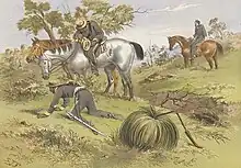 Peu de temps après l'établissement de la colonie, un grand nombre de moutons et de bovins ont été amenés par voie terrestre depuis les colonies de l'Est. Il y a eu de nombreux cas de conflit entre les peuples autochtones et les bouviers, les premiers désirant la protection du pays et les seconds s'empressant de tirer pour se protéger et protéger leurs troupeaux[43]