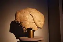 | Signe particulier | la sculpture porte une inscription en sud-picène sur le pilier de soutien droit. |