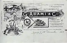 De formation ingénieur, employé un temps par Prinetti & Stucchi (it) à Milan, il crée à Florence un garage à la fin de l'année 1899, qui importe entre autres des modèles américains de The American Automobile et est capable de gérer les accumulateurs d'une voiture électrique ainsi que la galvanoplastie. Puis la société G. Adami & Ci., portant son nom, devient localement de 1901 à 1906 un véritable constructeur automobile implanté dans la ville. La production se limite à un seul modèle, la Rondine (l'hirondelle en français), équipée d'un moteur de 10 ou de 16HP développé sur place, présentée au salon de l'automobile de Turin en 1902 (sa conception par Adami ayant été lente et difficile, pour intégrer les progrès techniques étrangers de son temps) où elle obtient une médaille d'or. Adami est ainsi considéré comme l'un des tout premiers italien à réussir la mise au point d'une propulsion techniquement fiable pour une voiture motorisé conçue et assemblée dans ce pays.