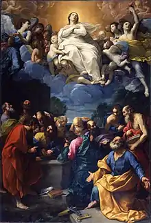 Selon la rumeur, la chapelle pontificale de Montecavallo (chapelle de l'Annonciation) est confiée à Reni[13] mais, parce qu'il s'estime sous-payé par les ministres pontificaux, l'artiste quitte de nouveau Rome pour Bologne, laissant la prééminence à Rome au Dominiquin.