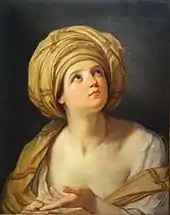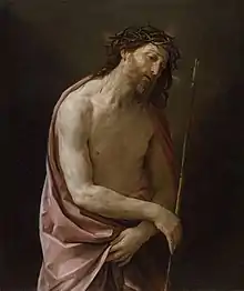 Cependant, les copies et imitations nombreuses, mais pas toujours bonnes, de Reni posèrent également des problèmes et rendirent plus tard difficile une classification équitable de son travail. Au XIXe siècle, le vent tourna brusquement en faveur du peintre, vénéré comme le « divin Guido », après que l'écrivain d'art anglais John Ruskin, qui détestait l'art baroque de l'école bolonaise en général, qualifia l'art de Reni de « sentimental » et, curieusement, même de « vulgaire »[16]. Le jugement de « sentimentalité » a été utilisé au XXe siècle encore et encore, notamment dans diverses encyclopédies, hardiment répétées, ainsi en 1908 dans le Meyers Konversations-Lexikon[27] - qui d'ailleurs rabaissait nombre d'artistes baroques italiens probablement par esprit de nationalisme - ou en 1968 par Hans Werner Grohn dans Kindler's painting lexicon[28] ; Joachim Fernau a parlé en 1958 d'« image(s) très douce(s), complètement sans atmosphère et intérieurement fausse(s) »[29].