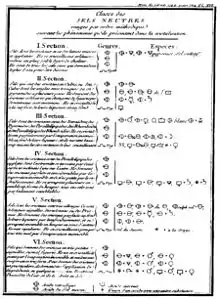 En 1754, Rouelle lit à l’Académie, dont il était devenu associé en 1752, son Mémoire sur les sels neutres dans lequel on fait connoître deux nouvelles classes de sels neutres & l'on développe le phénomène singulier de l'excès d'acide dans ces sels[22]. Il reprend sa classification des sels en faisant cette fois varier les paramètres chimiques (comme la proportion des acides et bases) et non plus seulement physiques (comme la température)[4]. Il rappelle que la notion de sel neutre n'a cessé de s'étendre; parti de l'union des acides et des alkalis qui sont solubles dans l'eau et ont un goût salé, leur nombre n'a cessé d'augmenter après les travaux de Glauber. On a inclus ensuite des sels dont les bases sont l'alkali volatil et une terre absorbante[n 7] puis l'union des acides avec des substances métalliques.