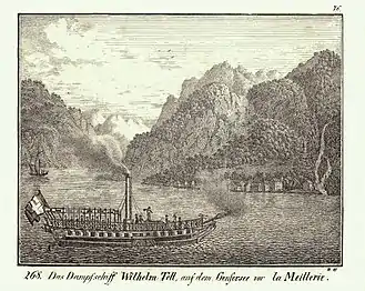 Le Guillaume Tell est le premier bateau à vapeur en Suisse. Lancé le , il transporte le public dès le .