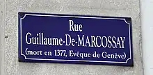 - « Rue Guillaume-De-MARCOSSAY », Noms géographiques du canton de Genève, sur ge.ch, État de Genève (consulté le ).