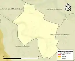 Les communes les plus proches[Note 2] sont[5] : Osserain-Rivareyte (0,7 km), Saint-Gladie-Arrive-Munein (1,4 km), Sauveterre-de-Béarn (2,0 km), Autevielle-Saint-Martin-Bideren (2,1 km), Espiute (3,8 km), Athos-Aspis (4,0 km), Andrein (4,0 km), Barraute-Camu (4,3 km).