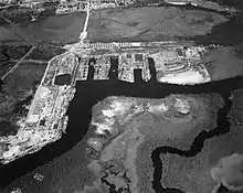Le marais de cyprès adjacent au cours d'eau (Chickasaw Bogue ou Chickasaw Creek) est asséché, des digues sont construites et des pompes de drainage sont installées[1], tandis qu'une ville d'entreprise est construite pour loger et servir les travailleurs du chantier.