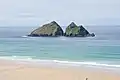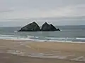 Vue des îles depuis la plage de la baie de Holywell, en 2010. | ||
