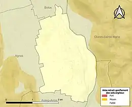 Le retrait-gonflement des sols argileux est susceptible d'engendrer des dommages importants aux bâtiments en cas d’alternance de périodes de sécheresse et de pluie[38]. 0,5 % de la superficie communale est en aléa moyen ou fort (59 % au niveau départemental et 48,5 % au niveau national)[Carte 6]. Depuis le , en application de la loi ELAN, différentes contraintes s'imposent aux vendeurs, maîtres d'ouvrages ou constructeurs de biens situés dans une zone classée en aléa moyen ou fort[Note 8],[39].