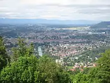 Vue aérienne de l'extrémité occidentale de la colline du Gurten depuis le nord. | |||