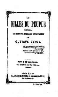 - Les filles du peuple : recueil de chansons anciennes et nouvelles de Gustave Leroy, Durand éditeur, Paris 1851, 143 pages.