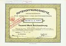 Action du Gutehoffnungshütte - Aktienverein für Bergbau und Hüttenbetrieb en date du 1 janvier 1898