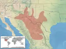 - au Mexique, dans le nord-est du Sonora, le Nord et l'Est du Chihuahua, au Coahuila, dans le Nord-Est du Durango, dans le nord du Zacatecas, au San Luis Potosí, au Nuevo León, au Michoacán, au Jalisco.