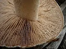 - Vue des gouttelettes sur les lames de Hebeloma crustuliniforme et photos de plusieurs autres hébélomes par Yves Deneyer sur le site du Cercle de Mycologie de Mons