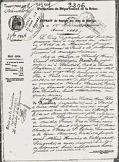 - Archives départementales des Hauts-de-Seine : État civil de Neuilly-sur-Seine - Acte de mariage no 192. Cote du document : image 215 à 216 - no 1890. Archives départementales des Hauts-de-Seine, no 137 avenue Frédéric et Irène Joliot-Curie, 92023 Nanterre.