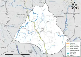 Les communes les plus proches[Note 2] sont[7] : Saint-Esteben (4,4 km), Saint-Martin-d'Arberoue (5,6 km), Mendionde (5,6 km), Irissarry (5,7 km), Armendarits (5,8 km), Iholdy (5,9 km), Macaye (6,6 km), Bonloc (6,9 km).