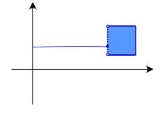 - La correspondance de ℝ dans ℝ définie par Γ(x) = {0} si x ≤ 0 et Γ(x) = [0, 1] si x > 0 (dont une variante est représentée ci-contre) est hémicontinue inférieurement mais pas supérieurement, puisqu'elle est à valeurs fermées mais que son graphe n'est pas fermé (cf. § « Théorème du graphe fermé » ci-dessous). Plus directement : elle n'est pas hémicontinue supérieurement au point 0 car l'ouvert ]–1, 1[ contient Γ(0) mais ne contient pas Γ(x) si x > 0.
